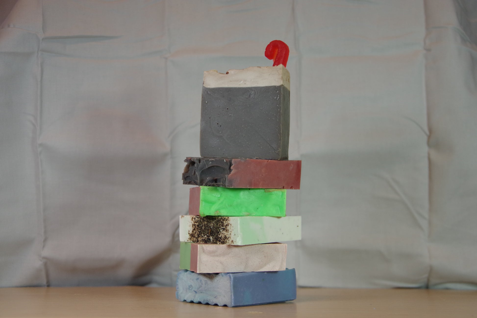 Ingredients:Olive oil, Coconut oil, Castor oil, Grapeseed oil, Bentonite clay, Fragrance, Skin safe colorants, dried mint